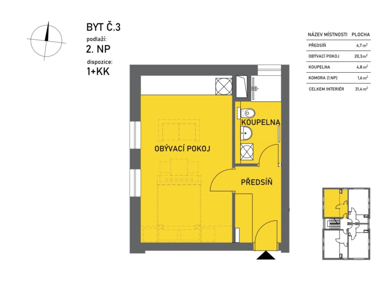 | č. 3 | 1+kk | 31,4 m2 | - | - | Rezervace |