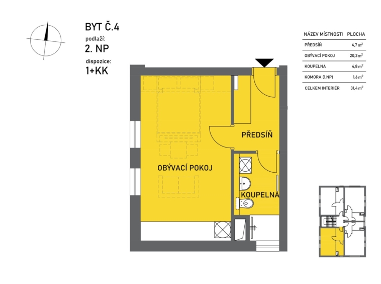 | č. 4 | 1+kk | 31,4 m2 | - | - | Rezervace |
