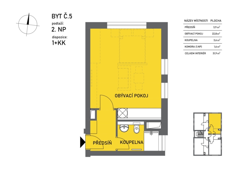 | č. 5 | 1+kk | 31,9 m2 | - | - | Rezervace |