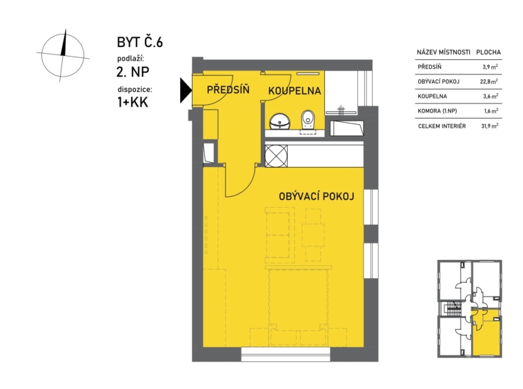 | č. 6 | 1+kk | 31,9 m2 | - | - | Rezervace |