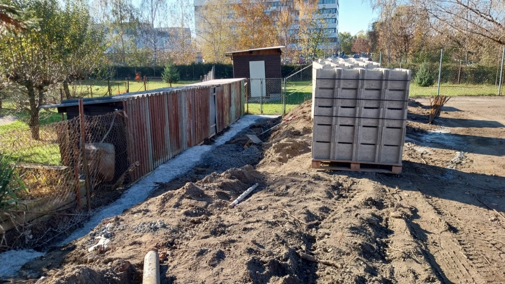 V na přelomu října a listopadu byla postavena opěrná stěna, která v budoucnu umožní vyrovnání celého pozemku do...