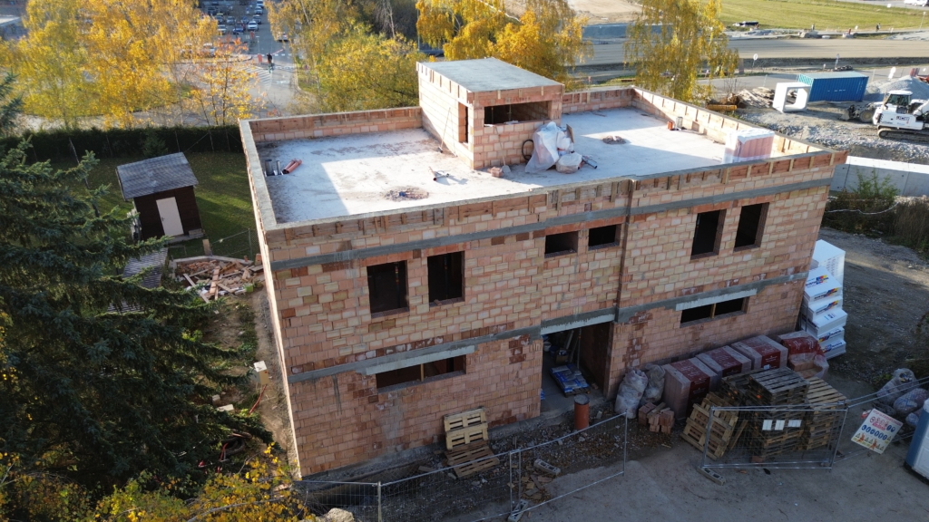 V průběhu léta jsme postavili první NP, vybetonovali stropy a probíhá zdění druhého NP. Během podzimu bude hrubá stavba...