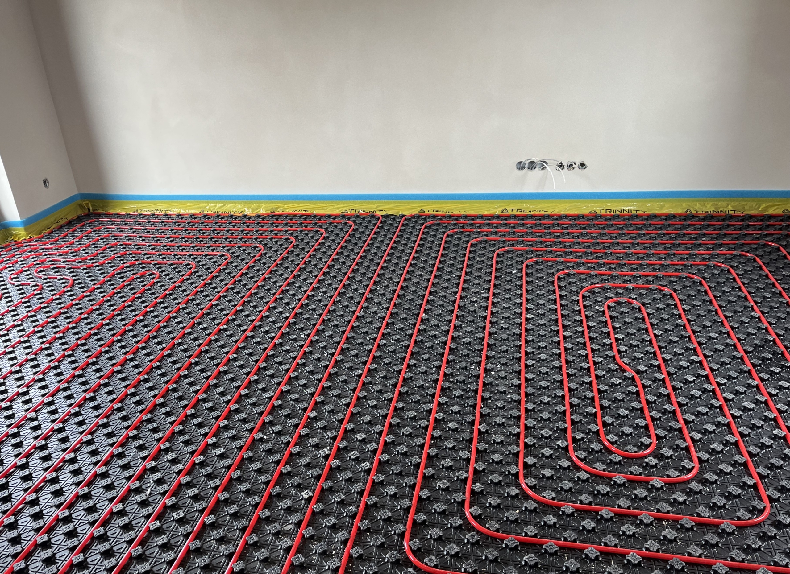 Celá stavba je vyštukována, máme položenou izolaci podlah a právě probíhá instalace podlahového topení zajišťující vysoký tepelný komfort i energetickou efektivitu.